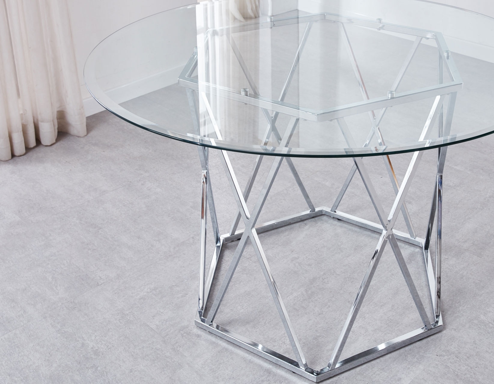 A simple c base or v base can give you the versatility to own the sparkling beauty of an all glass table.